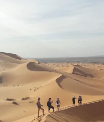 Unsere Gruppenreise führte uns von Marrakesch über das Atlasgebirge nach Ouarzazate – mit unserem Führer Abdoul und unserem Fahrer Mohammed. Nach einem Besuch bei Abdouls Familie hatten wir eine Nacht in M’Hamid und anschließend eine Nacht in der Wüste als Ziel. Es waren unvergessliche Eindrücke: abends am gemütlichen Lagerfeuer und frühmorgens beim herrlichen Sonnenaufgang! Landschaftlich vielfältig war die abenteuerliche Fahrt von Zagora nach Merzouga und wunderbar das Tal der Rosen, wo wir eine Wanderung durch die Felder machten. Nach einem Abstecher in die Dades- und in die