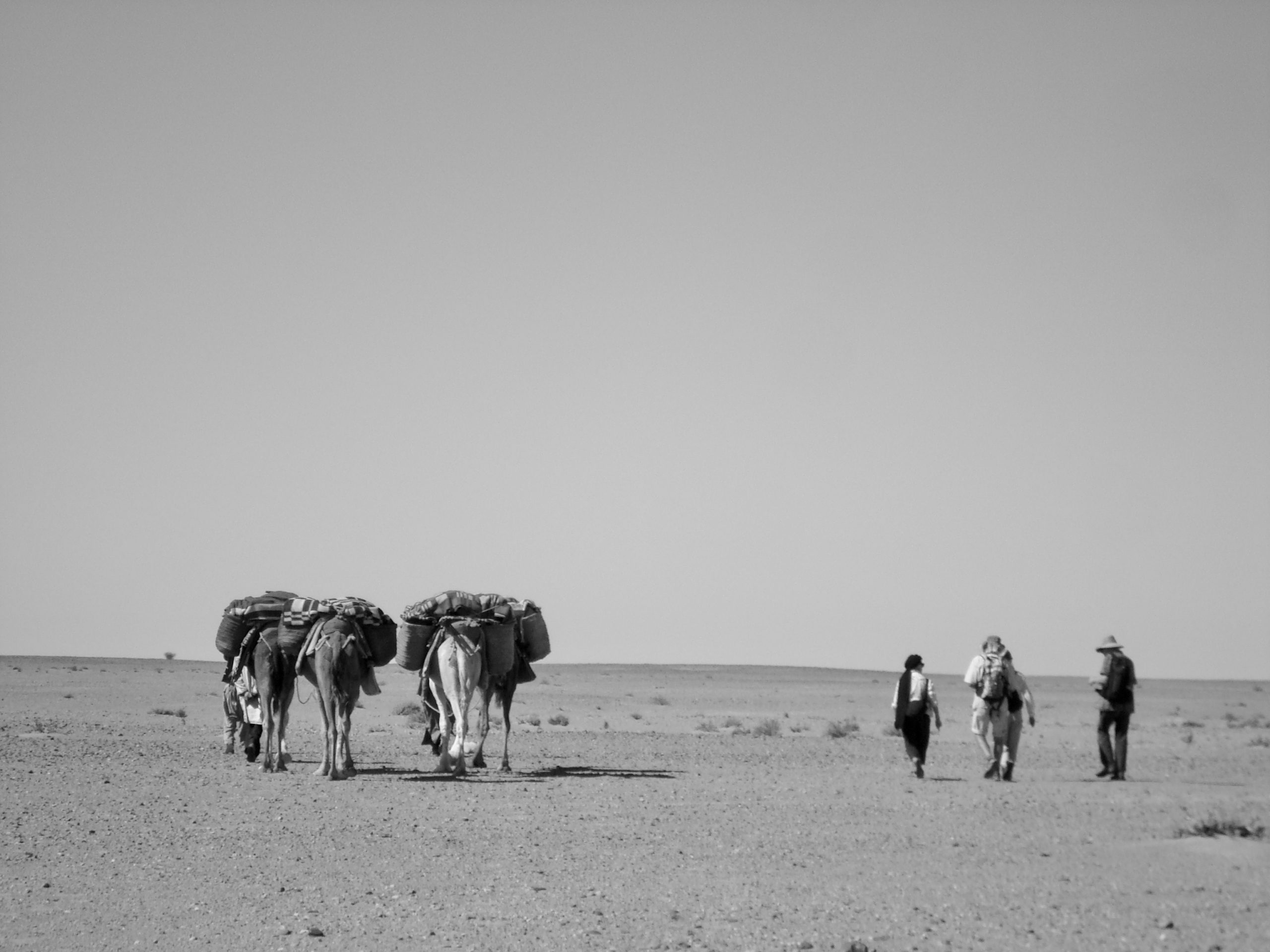 Wir werden diese Zeit in der Stille und Weite der Wüste verbringen, die uns viel Raum und Zeit für Meditation und Anderes bietet. Während den 5 Tagen tauchen wir in die wunderbaren und vielfältigen Landschaften der marokkanischen Sahara ein. Die Reduktion auf das Wesentliche erlaubt es uns, den Blick weg vom Alltag zu richten und uns auf unser Inneres zu konzentrieren. Wir werden von Dromedarführer und ihren Tieren begleitet, welche Zelte, Matten, Esswaren, Küchengeschirr, Wasser, Trommeln, sowie unser Reisegepäck transportieren.